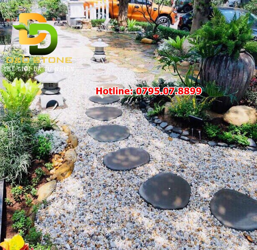 Sỏi rải lối đi giúp không gian sân vườn trở nên sang trọng, sạch sẽ và dễ bảo trì.
