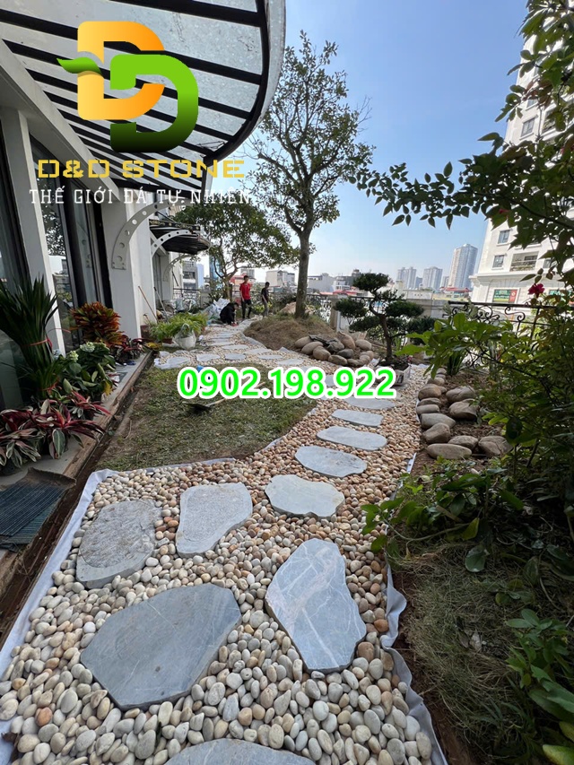 - Không gian nhiều cây xanh → hợp sỏi trắng, sỏi vàng