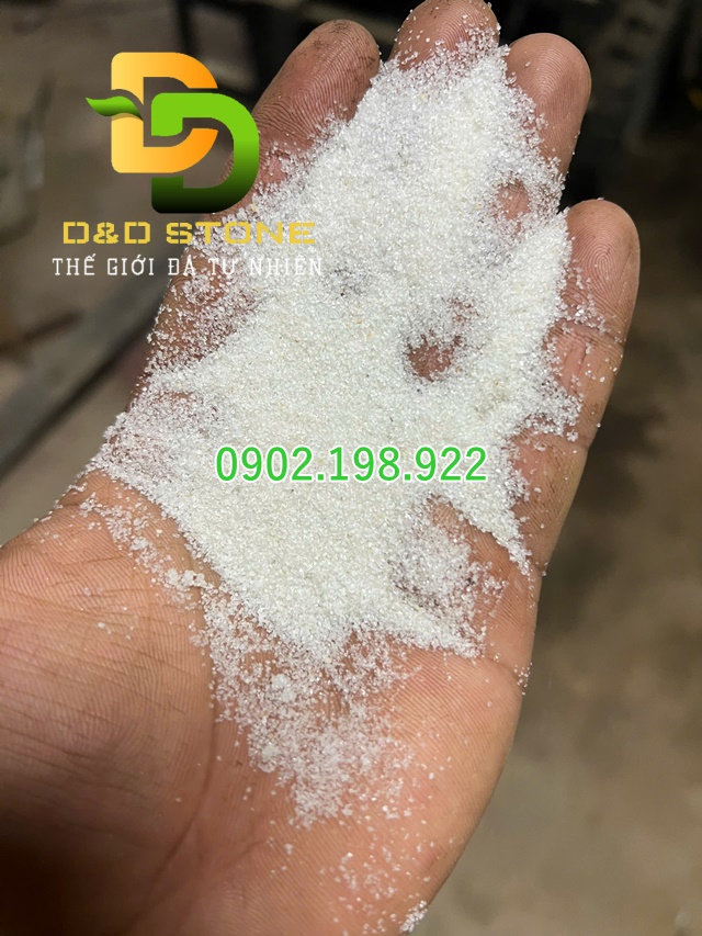 Cát trắng nhân tạo là sản phẩm được tạo ra từ quá trình nghiền và sàng lọc đá trắng tự nhiên (đá vôi hoặc đá granit sáng màu) bằng công nghệ hiện đại. Sau khi nghiền, hạt cát được rửa sạch, tách tạp chất và sấy khô, đảm bảo đạt chuẩn về độ trắng, độ mịn, độ cứng và kích cỡ hạt. Tại D&D Stone, cát trắng nhân tạo được sản xuất trực tiếp tại nhà máy Châu Sơn – Ninh Bình, từ nguồn đá trắng có hàm lượng CaCO₃ cao (96–98%), độ trắng 88–92%, và kích thước hạt đa dạng từ 0,1mm đến 5mm, đáp ứng mọi yêu cầu kỹ thuật của khách hàng.