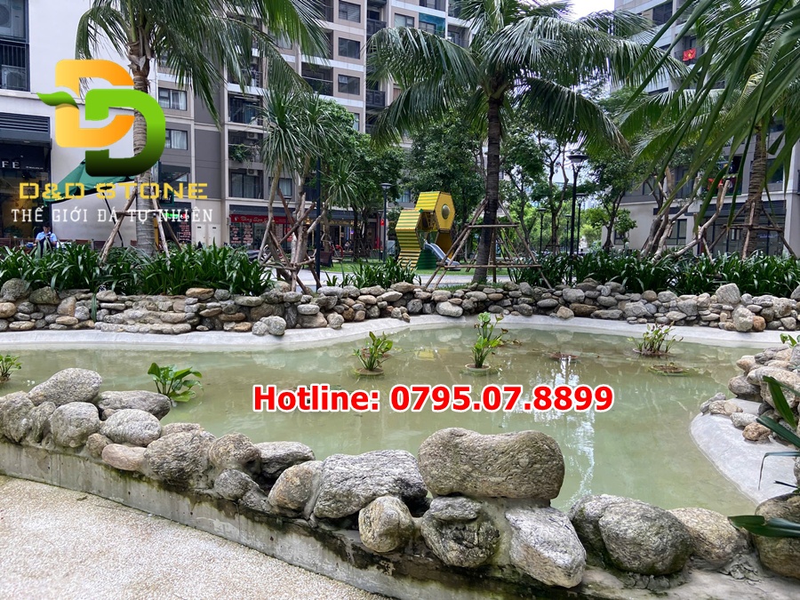 • Trang trí viền hồ: Kết hợp cùng cây xanh, tượng hoặc thác nước mini.