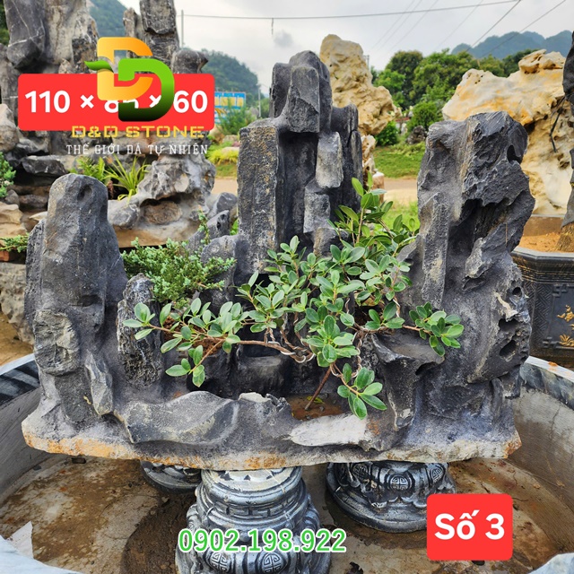 Chất liệu: Đá vôi, độ cứng vừa phải, dễ sắp đặt và chịu được mưa nắng lâu dài.