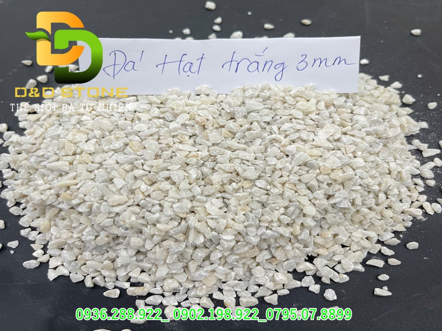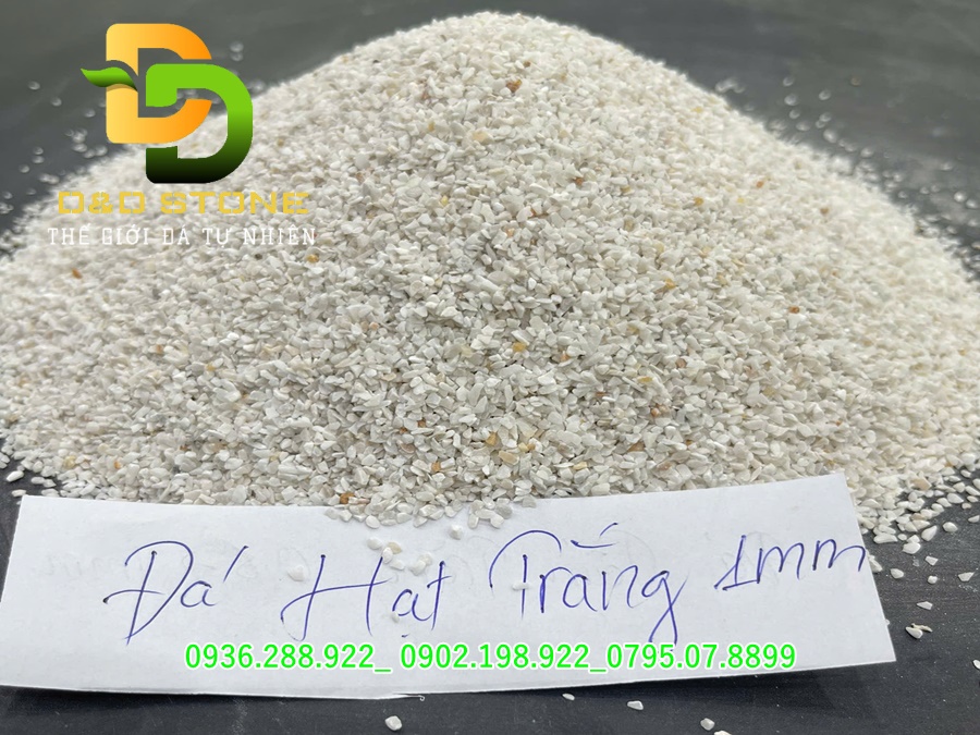 Đá hạt trắng 1.5mm là dòng nguyên liệu cao cấp được sản xuất trực tiếp tại nhà máy D&D Stone từ nguồn đá vôi trắng tinh khiết tại Ninh Bình. Với kích thước siêu mịn, hạt đều, bề mặt sáng bóng, sản phẩm được ứng dụng rộng rãi trong gạch terrazzo, gạch granito, bê tông rửa, sơn trang trí và vật liệu xây dựng cao cấp.